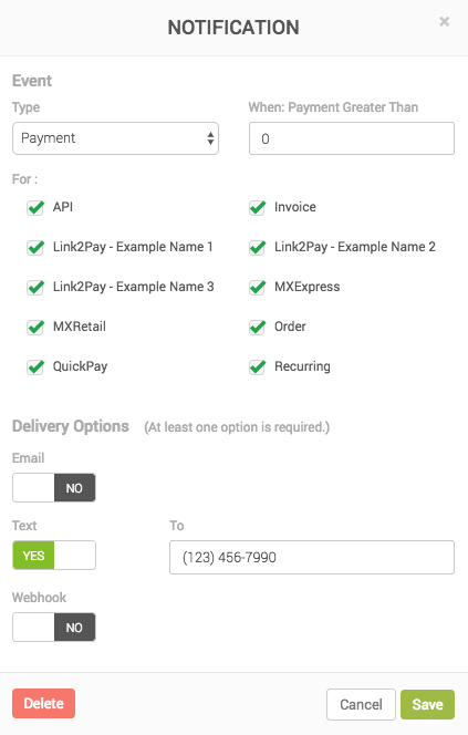There is a ton of flexibility with these notifications, so if you want to set up a couple different notifications for the same event with different amounts based on the sources you can certainly do that as well.