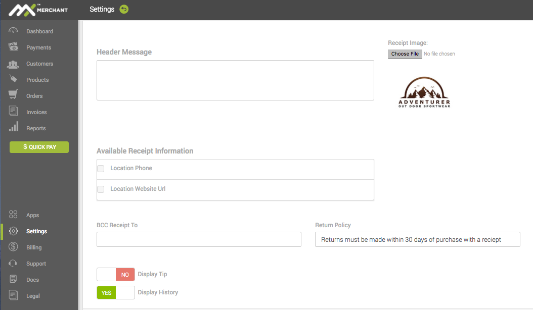 - Make sure to click the save button at the bottom of the receipt settings to lock in your photo
